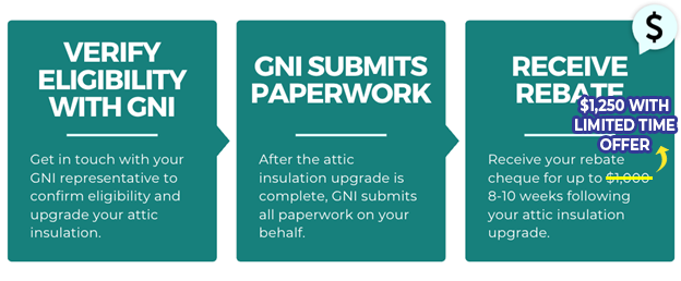 This single-measure rebate is designed to make upgrading your attic easier, faster, and more affordable, with no energy assessment required and all program paperwork handled by Great Northern Insulation. Confirm your eligibility with Great Northern Insulation, complete your attic insulation upgrades, and receive your rebate cheque in the mail – that's it!